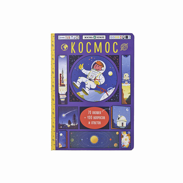 Эта книга наверняка станет одной из самых любимых у вашего малыша, ведь она не простая, а интерактивная: содержит 100 вопросов с ответами и 70 открывающихся окошек. Путешествуя по страницам книги, малыши узнают, сколько планет в нашей Солнечной системе, как рождается звезда и какая разница между метеором и метеоритом. А открывая каждое окошко, расположенное на страницах книги, дети получат ещё массу дополнительной информации, которую они непременно запомнят.