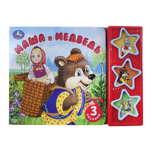 Книга «Маша и Медведь» — это яркая озвученная книжка с изображением Маши и Медведя на обложке, содержащая три песенки по мотивам русской народной сказки в обработке П. Добры, которые помогают малышу запомнить сюжет и героев.