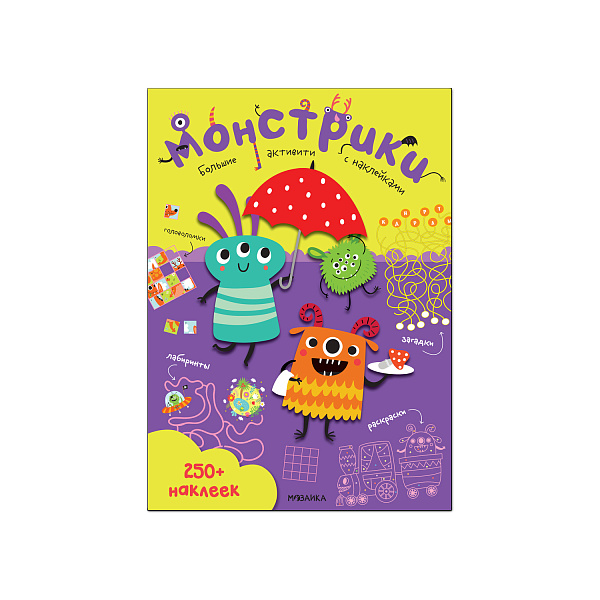 Компания веселых и нестрашных монстриков собралась на страницах активити, чтобы помочь малышу развить моторику рук, воображение, логику и память. На каждой страницы представлены увлекательные головоломки, загадки, задачи, лабиринты и раскраски. Они поднимут настроение ребенку и помогут провести время с пользой. Разнообразить обучение смогут наклейки и красочные иллюстрации, всего в наборе 250 наклеек. Соберите с ребенком всю коллекцию раскрасок, чтобы познакомиться с другими героями детского активити. Рекомендовано для детей младшего возраста.