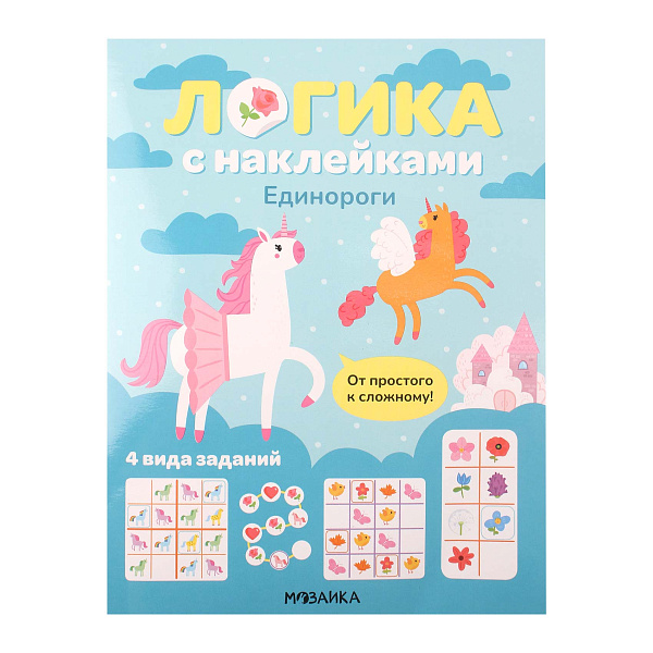 Книга Мозаика Kids развитие логики с наклейками единороги