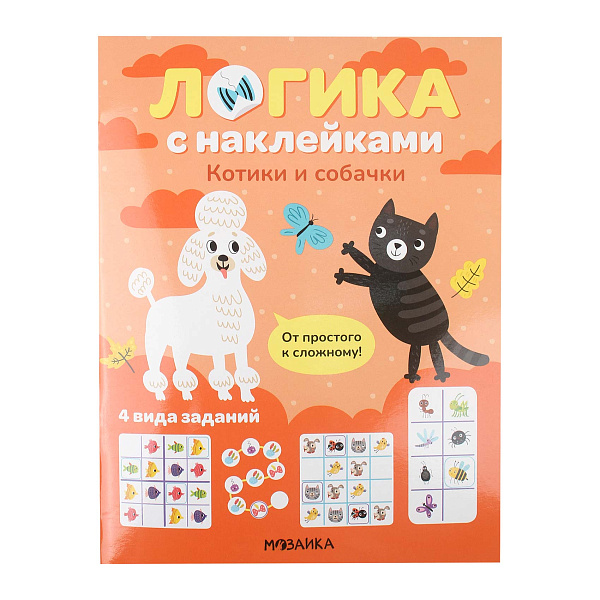 Книга МОЗАИКА Логика с наклейками Котики и собачки