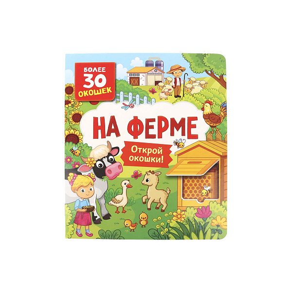 Эта книжка с твёрдыми и износостойкими картонными страницами дополнена окошками, которые очень интересно рассматривать. Сборник способствует развитию мелкой моторики рук, памяти, концентрации и речи. Яркие картинки дополнены простыми стишками, которые помогут ребёнку выучить названия животных, живущих на ферме.