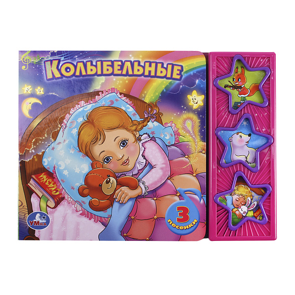 В книге представлены иллюстрации знаменитых персонажей, знакомя с классикой отечественных мультфильмов. Каждая страница дополнена кнопками, которые активируют колыбельные мелодии и известные детские песенки. Благодаря качественному звуку, книга помогает создать успокаивающий фон для засыпания.