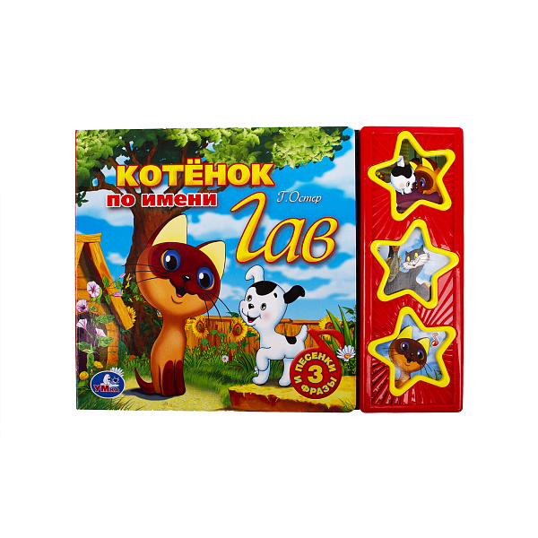 Настоящим сюрпризом для малышей дошкольного возраста станет книга озвученная с цветным разворотом «Котенок по имени Гав». Изделие выполнено из плотного мелованного картона, который малышу будет приятно держать в руках.
