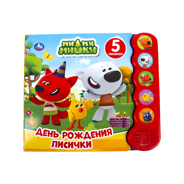 Книгу озвученную «День рождения лисички» можно предложить деткам с шестимесячного возраста. Красочное музыкальное издание повествует малышу об увлекательных историях любимых персонажей. Книжечка имеет 5 звуковых кнопок, с помощью которых малыш прослушает веселые песенки. Потребуется лишь легкое нажатие на клавишу, и звук тотчас включается. Подобное занятие надолго увлечет внимание ребенка. При этом формируется вкус, образное мышление, развивается моторика рук, тренируется память. Пособие состоит из 10 картонных страниц, благодаря чему его можно брать даже с собой на прогулку. Формат: 200х175мм. Функционирует от 3 батареек типа LR44 (в комплекте).