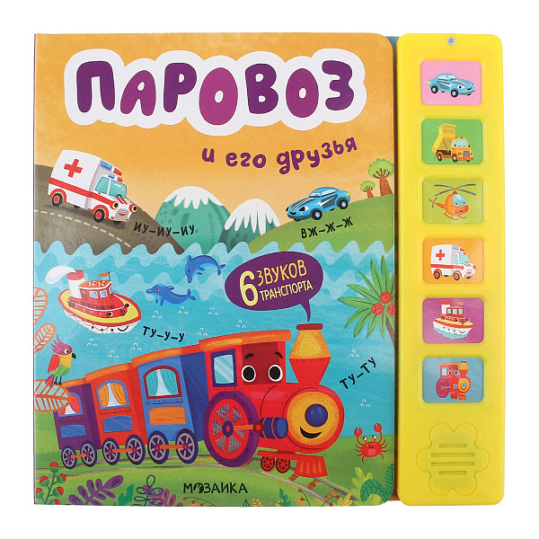 Книга «Паровоз и его друзья» приглашает в увлекательное путешествие по миру транспорта. Это интерактивное издание включает в себя разнообразие транспортных средств, таких как самосвал, вертолет, гоночный автомобиль и машина скорой помощи. Звуковая панель книги оживляет историю, воспроизводя реалистичную озвучку.