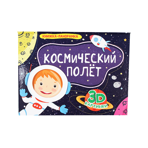 Книжка-панорамка — это возможность показать ребенку удивительный мир на маленьких страницах. Стоит открыть книгу «Космический полет», как оживают главные герои, вырисовываются пейзажи, начинают разворачиваться действия — объемный эффект достигается за счет специально сложенных элементов из бумаги и картона.