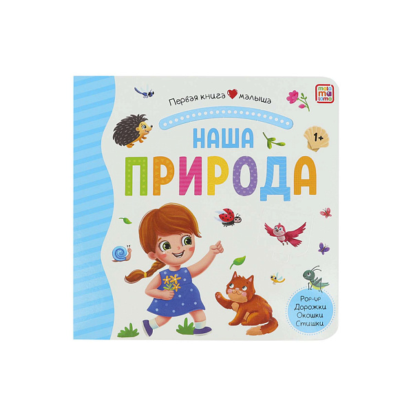 Развивающая детская книга «Наша природа» относится к популярной серии «Первая книга малыша». Она выполнена из плотного картона. На каждой странице детей ждут яркие и объемные иллюстрации, веселые стихи, тактильные чудо-дорожки и открывающиеся окошечки с сюрпризами в них.