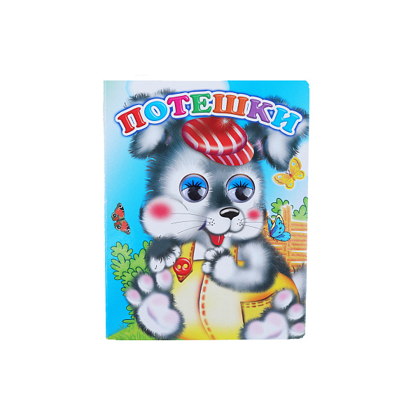«Потешки» предназначены для самых маленьких детей. В ней 10 листов из плотного картона EVA, который трудно порвать или смять. На каждой страничке стихотворная сказка-потешка, взятая из русского фольклора. Книга богато украшена яркими цветными иллюстрациями. На обложке изображен веселый щенок в красной кепочке. Он умеет вращать глазками, что приводит в восторг малышей. Такие книжки с раннего возраста прививают у детей любовь к чтению, знакомят с народным творчеством. «Потешки» можно читать детям с 12 месяцев. Когда ребенок начнет учиться читать, он сможет использовать книжку для самостоятельного прочтения.
