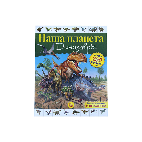 Красочное издание познакомит учеников начальной школы с ископаемыми обитателями планеты Земля. Занимательная экскурсия в прошлое позволит узнать много занимательных фактов о жизни динозавров. Ребенок с удовольствием изучит иллюстрации, прочитает заметки о хищниках и травоядных ящерах. Полезным дополнением является большая карта. Ее можно украсить тематическим наклейками, разместить на стене. Приятным бонусом станут небольшие стикеры, которые можно применить для оформления ежедневника или тетради