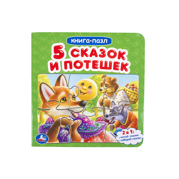 В книге «5 сказок и потешек» собраны популярные детские сказки и потешки, которые так нравятся малышам. Страницы изготовлены из плотного картона с ламинированным печатным покрытием. А углубления, сделанные в картоне, позволяют комфортно расположить в них паззл, который дублирует основное изображение страницы.