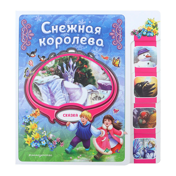 Книга «Снежная королева» представляет известную сказку в ярком оформлении. Страницы имеют нестандартный формат с фигурной вырубкой. Это помогает запоминанию персонажей и сюжета. Яркие иллюстрации сопровождают простой текст.