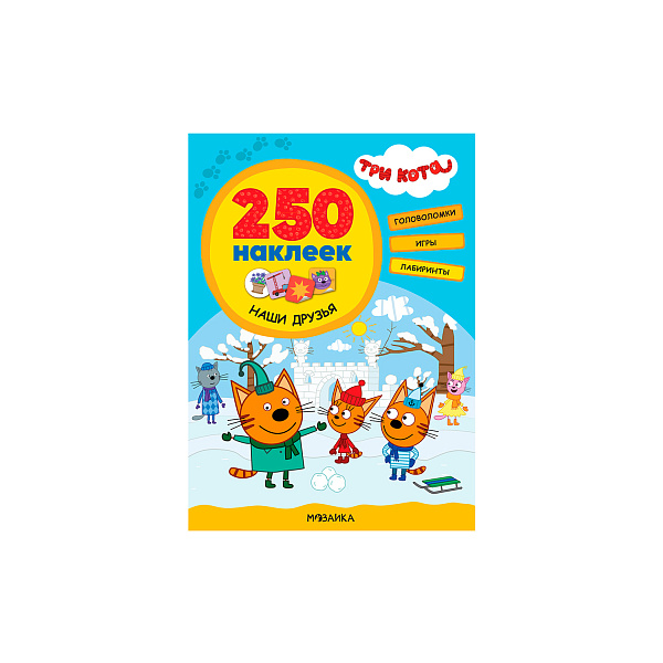 В большой книге «Три кота» ребенок найдет 250 красочных наклеек, веселые игры, головоломки и захватывающие лабиринты по мотивам излюбленного мультфильма о непоседливых котах. На каждой страничке маленький почемучка найдет интересные задания. В игровой форме ребенок тренирует усидчивость, воображение, моторику рук и память, а игры с цифрами и буквами развивают логику и мышление. Красочные иллюстрации и главные герои мультфильма с радостью помогут ребенку преодолеть преграды и решить головоломки. Рекомендовано для детей младшего возраста.