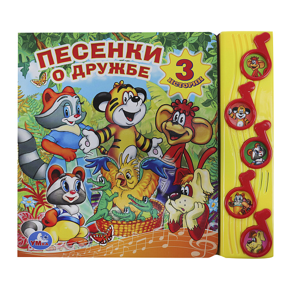 Книга «Песенки о дружбе» — это яркая озвученная книжка с изображением Тигренка, Мартышки и других героев на обложке, содержащая три песенки по мотивам одноименных мультфильмов, которые помогают малышу понять важность дружбы и добрых отношений.