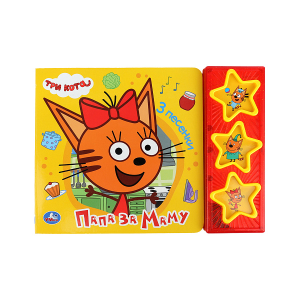 Хорошим приобретением для ребенка станет яркая книга со звуковым сопровождением. Издание создано по мотивам популярного мультфильма про веселых котят и их родителей. Дети будут в восторге от тематических иллюстраций, получат массу незабываемых эмоций. Активные кнопки в форме звездочек позволят включить 3 забавных песенки в произвольном порядке.