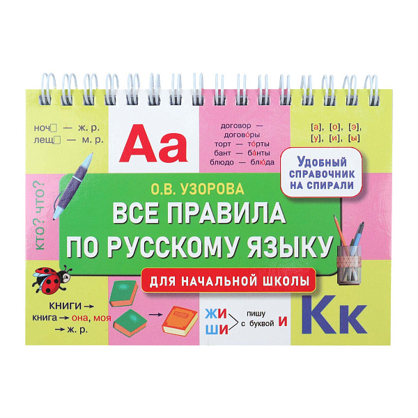 Справочник содержит полный набор правил русского языка для начальной школы. Материал организован по классам и темам. Удобная спираль позволяет фиксировать книгу на нужной странице. Цветовые обозначения и четкая структура облегчают поиск информации. Пособие помогает систематизировать знания по орфографии и пунктуации. Регулярная работа со справочником способствует повышению грамотности письма. Книга подходит для подготовки к контрольным работам и диктантам.