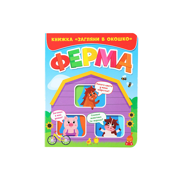 В серии книг со сквозными окошками малыша научит различать домашних животных книжка «Ферма». На 10 картонных страницах рассказывается об обитателях животноводческого хозяйства: лошадях, свиньях, коровах, домашних птицах. Книжка отличается красочным оформлением, она богато иллюстрирована.