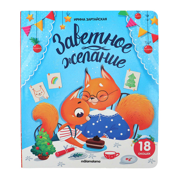 В центре повествования – милый крошка Бельчонок, который с нетерпением ждет Нового года и ломает голову над тем, какое же самое заветное желание загадать Деду Морозу. Эта трогательная история наполнена предпраздничной суетой, размышлениями о мечтах и семейным теплом. На каждой странице читателей ждут 18 больших красочных окошек, за которыми прячутся ответы на вопросы Бельчонка, подсказки и дополнительные детали сюжета.