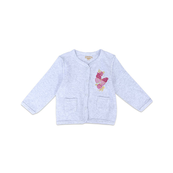 Комфортная нательная кофточка для девочек изготовлена из хлопка на 100%. В такой кофте удобно спать, играть и принимать пищу. Кофта светлая с ярким принтом на груди – изображением бабочки с красными и розовыми крыльями. По бокам расположены два карманчика. Застежка на кнопках-пуговицах прочно закреплена, поэтому ребенок не сможет ее оторвать и проглотить. Плечевые швы и воротник прошиты двойной строчкой, что увеличивает срок службы изделия. Кофта легко отстирывается при загрязнении, она гигиенична и комфортна для маленького малыша.