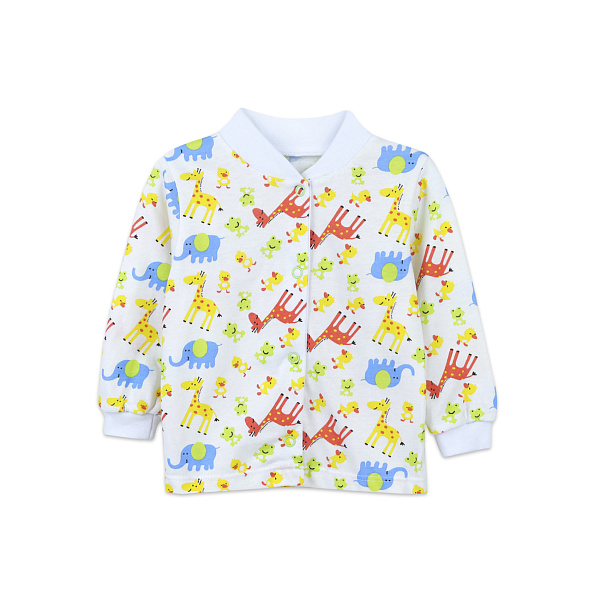 Порадуйте маленького модника милым и забавным джемпером. Модель рассчитана на малышей ясельного возраста. Изделие пошито из натурального хлопка, материал мягкий и приятный на ощупь, хорошо пропускает воздух, обеспечивая комфорт в процессе носки. Свободный крой не сковывает движения ребенка, а длинные рукава с эластичными манжетами дополнительно согреют руки. Воротник-стойка защитит шею от прохладного ветра. В качестве застежки использованы кнопки. Забавный принт с разноцветными животными порадует маленького модника.