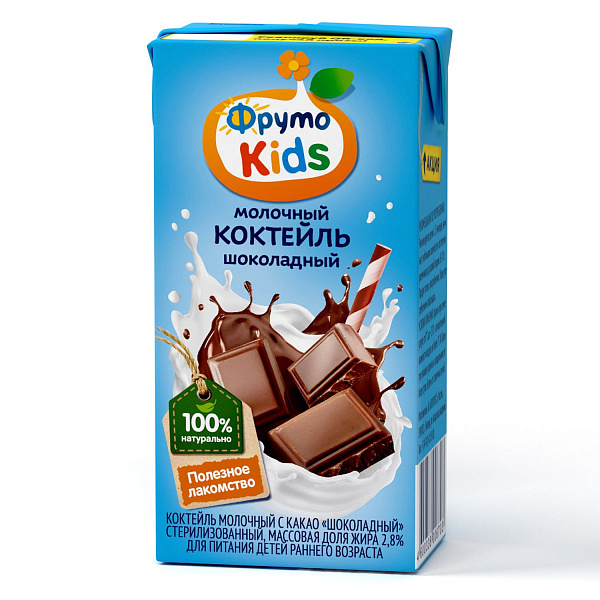 Детский питательный коктейль «ФрутоНяня» понравится малышам своим нежным вкусом. Напиток имеет нежную однородную структуру, которая гармонично сочетается с молочным шоколадом. Имеет приятный аромат и неповторимый насыщенный вкус. Коктейль идеально подойдет для полдника, он произведен из натуральных компонентов, поэтому предполагает употребление даже самыми маленькими сладкоежками. Поставляется в компактной упаковке весом 200мл, поэтому его можно брать с собой на прогулку или давать ребенку в школу.