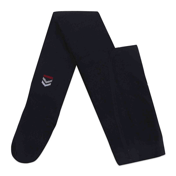 Колготки теплые для мальчика выполнены в темно-синем цвете. Ткань гладкая и плотная. На голени есть вышивка с красной полосой. Они подходят для холодной погоды. Состав включает 80% хлопка, 18% полиамида и 2% эластана. Хлопок придает мягкость. Полиамид и эластан добавляют эластичность. Ткань сохраняет форму после стирок.