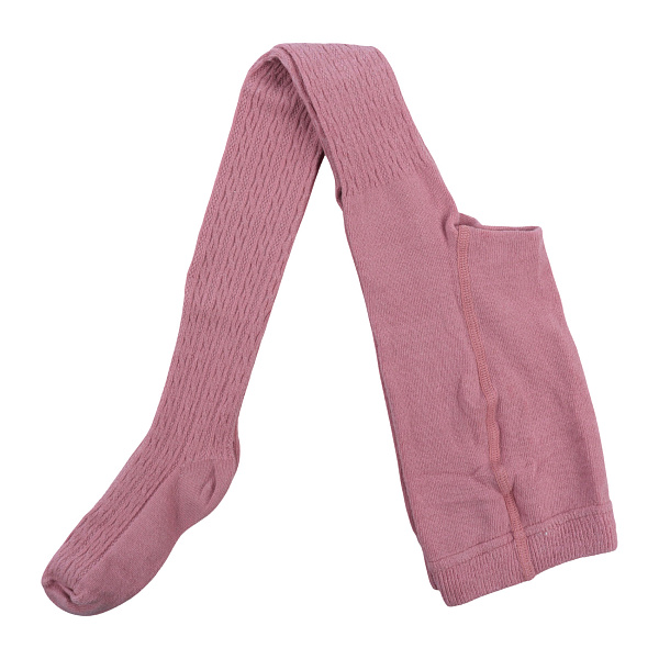 Колготки выполнены в розовом цвете. Текстура ткани создает эффект плетения. Дизайн прост и подходит для девочки. Они защищают кожу от холода. Они сохраняют тепло в прохладную погоду. Колготки используют для повседневной носки, они хорошо сочетаются с платьем или юбкой.