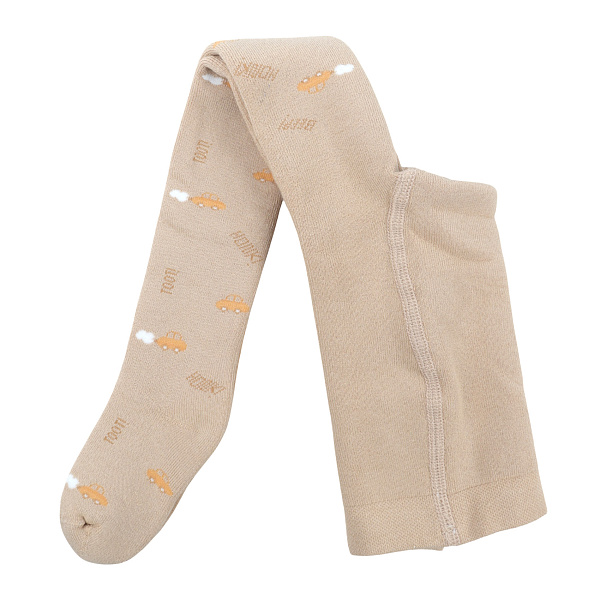 Колготки Arti теплые хлопковые с принтом машинок бежевые