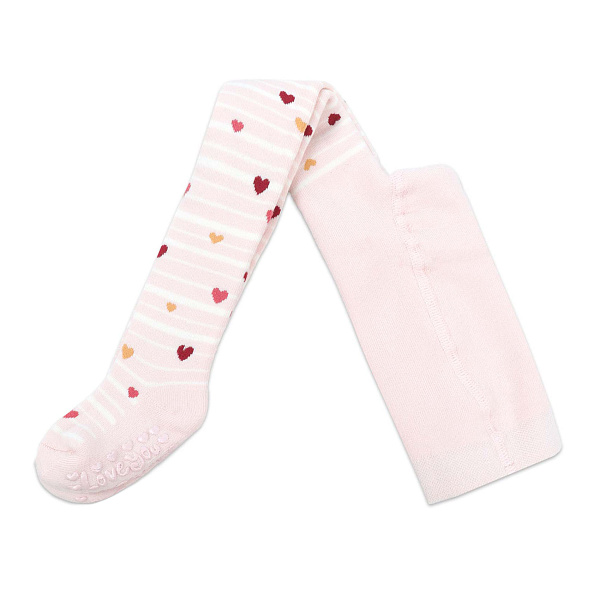 Колготки Arti теплые хлопковые с принтом разноцветных сердечек розовые