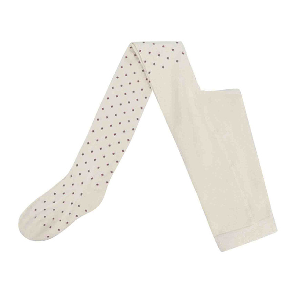 Изделие представлено в нежном бежевом оттенке с аккуратным рисунком из мелких точек темно-розового цвета, что придает колготкам стильный и милый внешний вид. Материал позволяет коже дышать и защищает ее от раздражений, подходит для чувствительной детской кожи. Колготки легко стираются, сохраняют форму и цвет даже после многократных стирок.