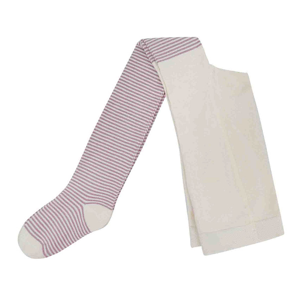 Изделие представлено в нежном бежевом оттенке с аккуратным рисунком в тонкую полоску темно-розового цвета, что придает колготкам стильный и милый внешний вид. Материал позволяет коже дышать и защищает ее от раздражений, подходит для чувствительной детской кожи. Колготки легко стираются, сохраняют форму и цвет даже после многократных стирок.