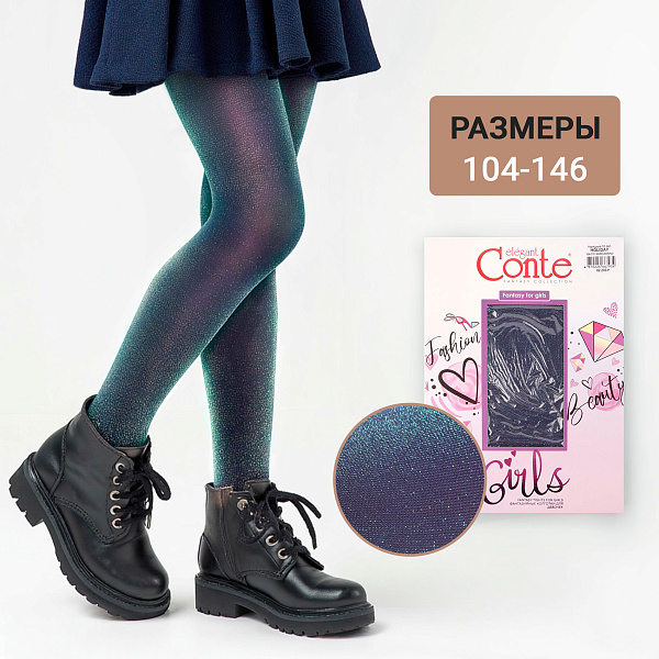 Восхитительные детские колготки для маленьких модниц. Эта модель отличается ярким насыщенным синим цветом с переливами и сверкающим перламутровым блеском. Тончайшие нити люрекса создают эффект мерцания, придавая колготкам по-настоящему праздничный и торжественный вид.