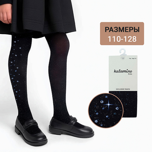 Колготки Katamino капроновые блестящие с синими стразами черные