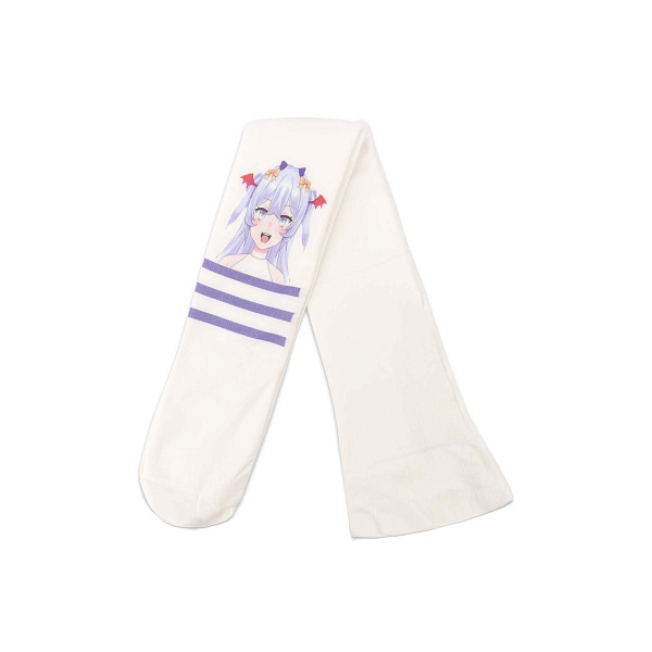 Милые и привлекательные колготки для девочки станут прекрасным дополнением к гардеробу маленькой модницы и помогут создать неповторимый образ. Колготки выполнены в оригинальном дизайне – на белом фоне изображен красочный персонаж в аниме-стиле, а рисунок дополняют фиолетовые полоски.