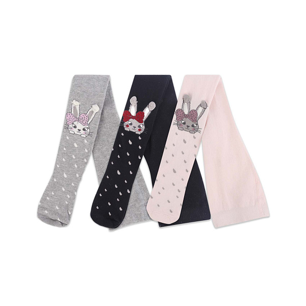 В ассортименте три универсальных расцветки: серая, черная и розовая. На каждом варианте есть небольшой рисунок в виде зайца. Изделие можно носить вместе с платьями и юбками, а также поддевать под штаны в холодное время года. Классические оттенки хорошо впишутся и дополнят любой гардероб.