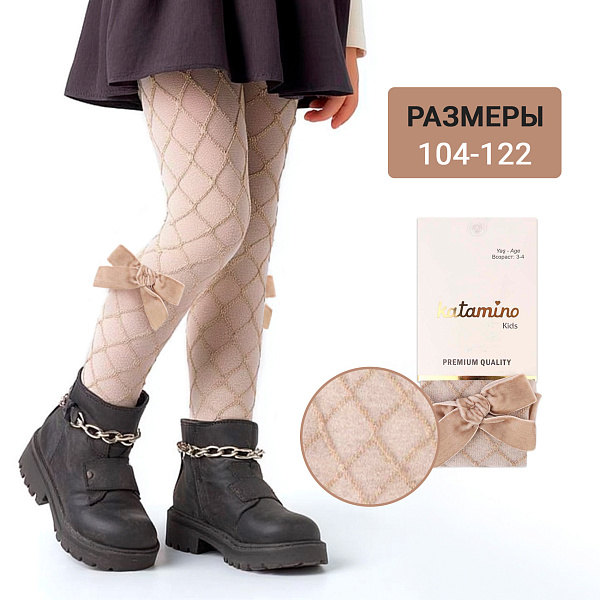 Колготки Katamino с узором сетка и мягким бантиком в ассортименте