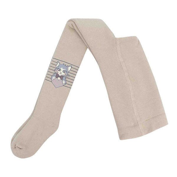 Колготки Katamino теплые хлопковые с изображением котика бежевые