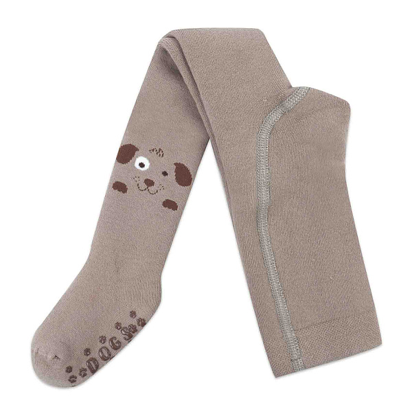 Колготки Katamino теплые хлопковые с противоскользящими протекторами и принтом собачки светло-коричневый
