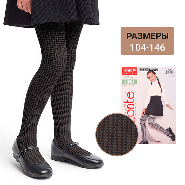 Стильные детские колготки для девочек с оригинальным принтом «гусиная лапка». Эта модель выполнена из эластичных материалов, которые обеспечивают максимальный комфорт и удобство для юных модниц.