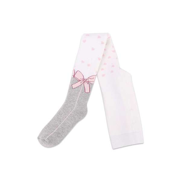Колготки с рисунком бантика с принтом сердечки серо-розовые