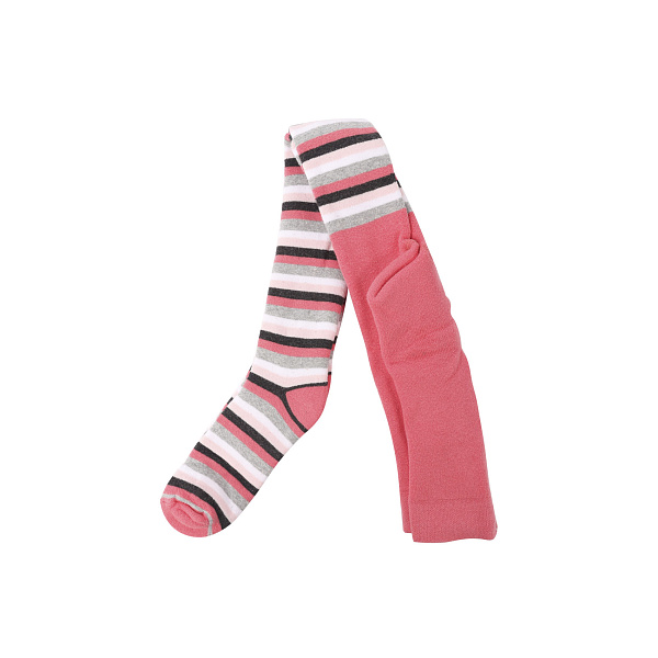 Колготки для девочек дошкольного возраста предназначены для ношения в межсезонный период. Изделие отличается оригинальным оформлением. Верх выполнен в красном цвете, нижняя часть в полоску с чередованием красных, белых, черных и серых полос.