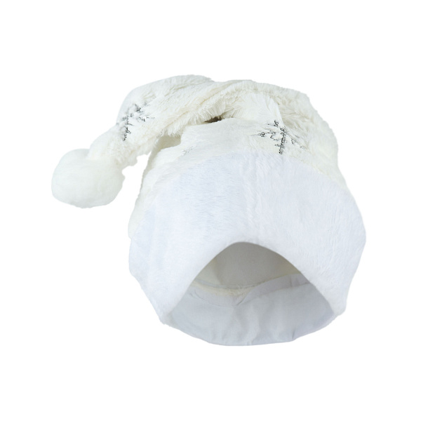 Сделайте образ ребенка в новогоднюю ночь по-настоящему сказочным вместе с пушистой и мягкой шапкой. Головной убор выполнен в виде колпака и по всей поверхности украшен изображениями сверкающих снежинок из серебристых пайеток. Изделие молочного цвета на основании дополнено широкой меховой вставкой, а макушка украшена пушистым помпоном. Такое украшение отлично подойдет для новогоднего утренника, а также станет изюминкой образа в семейном кругу.