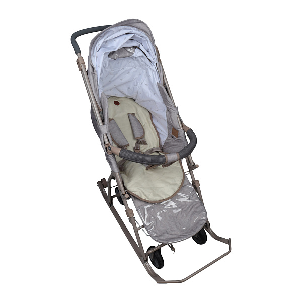 Коляска-санки комбинированная с муфтой и сумкой для хранения бежевая