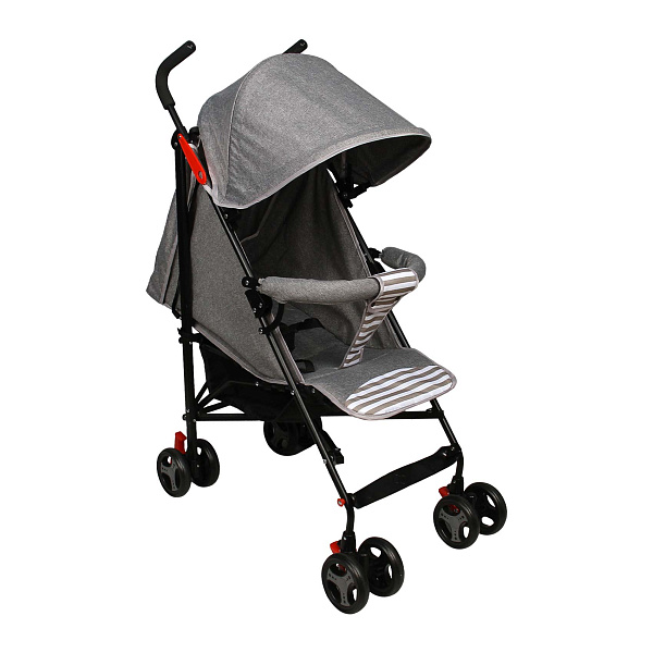 Коляска-трость в сером цвете — практичный выбор для городской жизни. Размеры в сложенном виде позволяют без труда разместить коляску в багажнике или компактно хранить дома.
