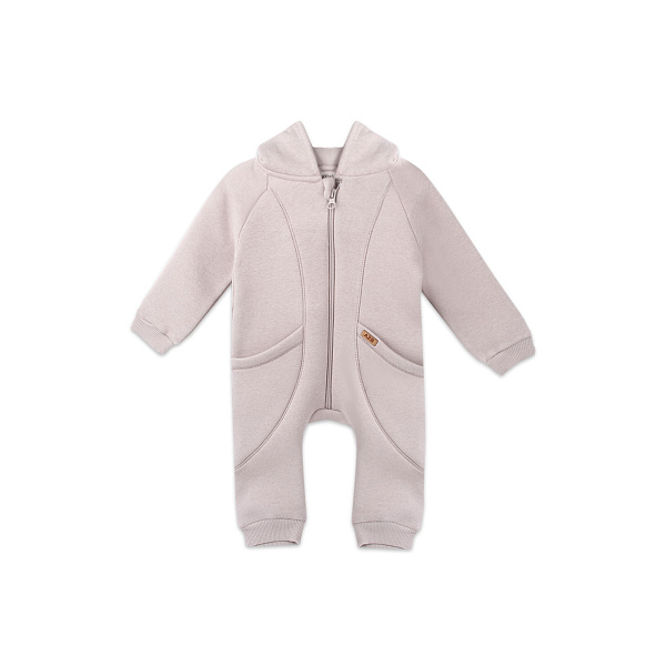 Комбинезон для девочки сшит из мягкой смесовой ткани бежевого цвета. Приятный на ощупь трикотаж хорошо сохраняет тепло. Комбинезон пригодится для прогулок в прохладные дни. Низ длинных рукавов и низ брючин оканчиваются широкими манжетами-резинками, защищающими тело ребенка от сквозняков. Комбинезон легко и быстро надевается и снимается благодаря удобной застежке. Молния вшита от паха до горловины и имеет тканевую защитную планку в верхней части. Глубокий капюшон их мягкой ткани защитит голову малышки от сквозняков и переохлаждения.