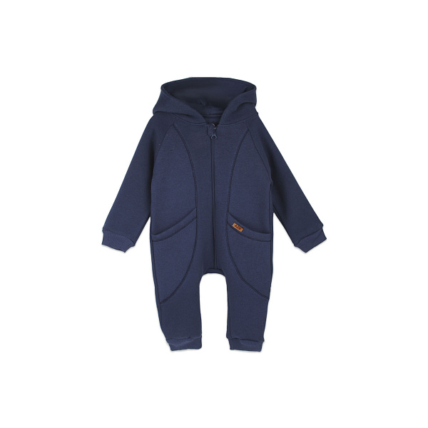 Комбинезон изготовлен из смеси хлопка и полиэстера, он хорошо держит форму, легко отстирывается. Застегивается сквозным замком-молния.
