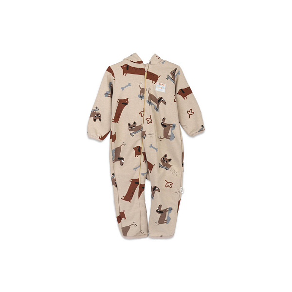 Комбинезон Bebetto на манжете с капюшоном принт собачки бежевый