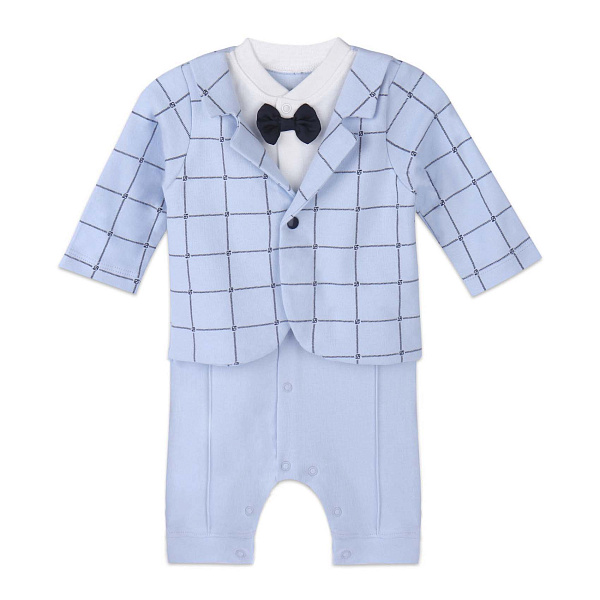 Комбинезон для мальчика с бабочкой станет модным и удобным дополнением к гардеробу ребенка. Внешний вид изделия привлекает нежным голубым цветом и имитацией делового костюма с бабочкой. Состав комбинезона — 100% хлопок, что гарантирует мягкость и комфорт для кожи ребенка.