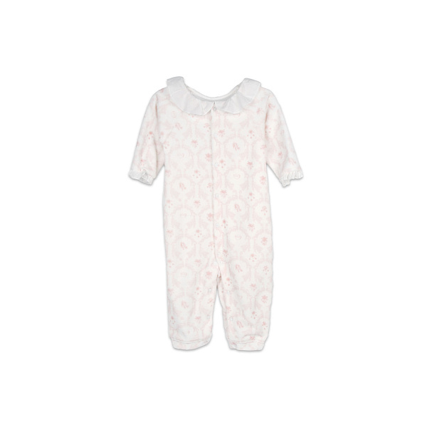 Практичный и красочный комбинезон для малышки станет незаменимым предметом гардероба в первые месяцы жизни. Светлый оттенок ткани с лаконичным принтом делает комбинезон подходящим для ежедневной носки и даже в качестве нижнего слоя одежды в холодное время года. Рукава и штанины оформлены узкими манжетами. Комбинезон обеспечит хорошую терморегуляцию в любой сезон. Особенностью модели является широкий отложной воротник, обрамляющий горловину. Такая оригинальная деталь превращает комбинезон в наряд маленькой принцессы. Застежка в виде кнопок располагается спереди и представляет собой молнию. В основе ткани использован хлопок и небольшая добавка полиэстера. Рекомендовано для детей ясельного возраста.