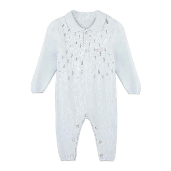 Вязаный комбинезон Bebetto голубого цвета создан для малышей. Он сделан из гипоаллергенного хлопка, что делает его безопасным для детской кожи. Пуговицы по всей длине позволяют легко сменить подгузник, не тревожа ребенка. Мягкий материал обеспечивает тепло в прохладные дни.